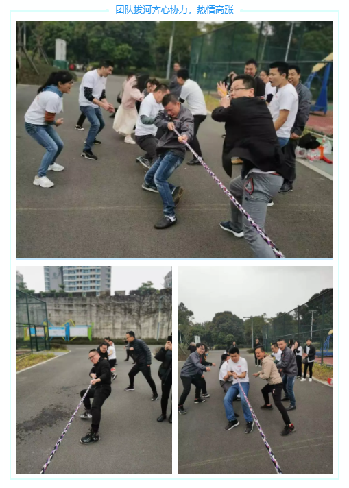 拔河比賽分成四組(銷售部、技術(shù)部各一組,生產(chǎn)部兩組),采用循環(huán)交叉比賽,勝一場記1分,按累計分數(shù)排名,之后選出獲勝的拔河團隊。
