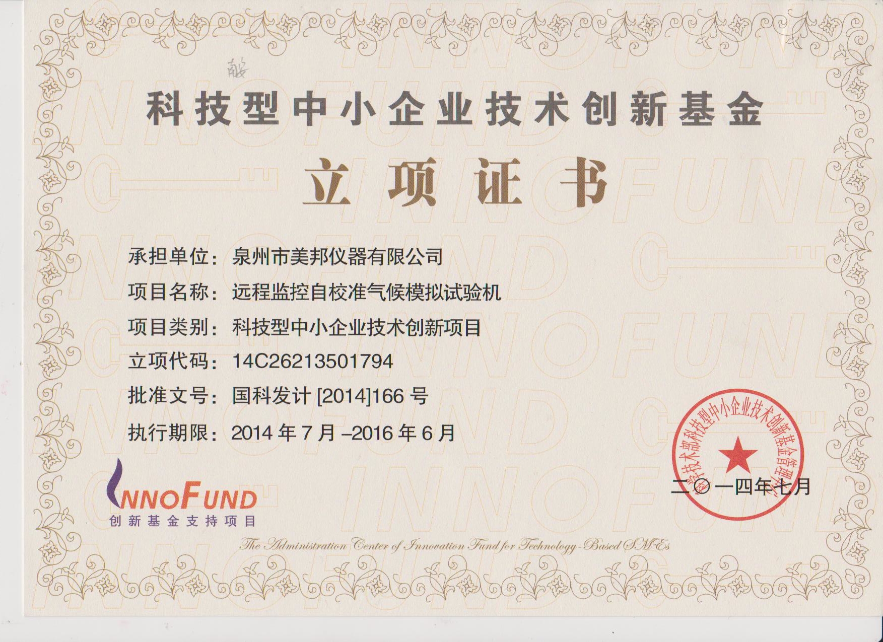 我司遠(yuǎn)程監(jiān)控自校準(zhǔn)氣候模擬試驗(yàn)機(jī) 喜獲科技型中小企業(yè)技術(shù)創(chuàng)新基金立項(xiàng)支持