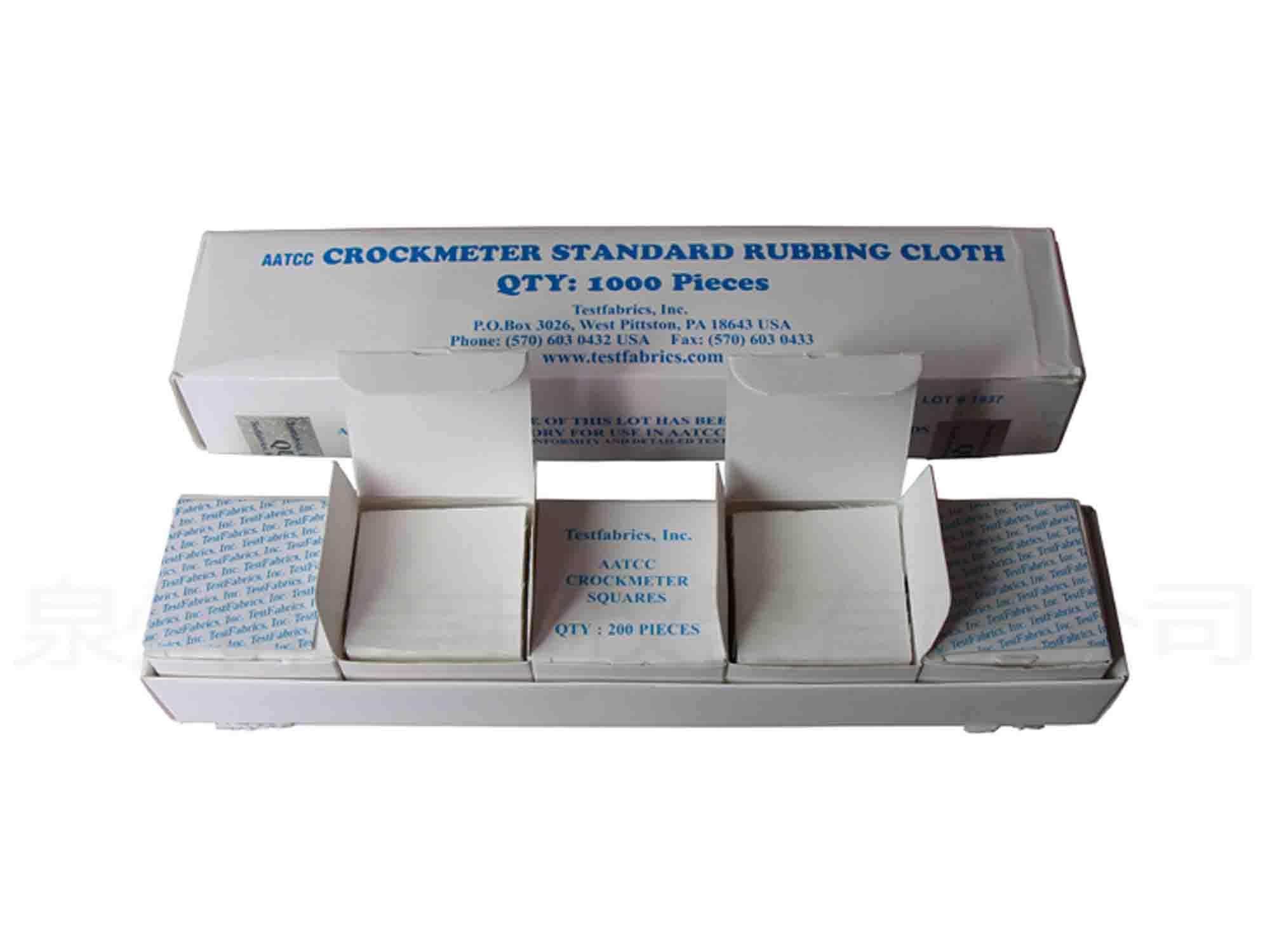 The United States imports, also known as small white cloth, friction white cloth, color fastness with small white cloth. With friction color fastness testing machine (instrument) used in standard dry / wet condition by setting a certain number of friction with the AATCC standard and &AATCC standard color card faded gray gray card &AATCC standard nine card (part of the standard rules on the use of ISO gray card) rating (color) and stained with the color color grade, so as to assess its ability in simulating the pattern exposure to other substances when the color of the firm. This standard friction cloth in the Japanese standard (JIS), are widely used American Standard, oubiao and Chinese in national standard.