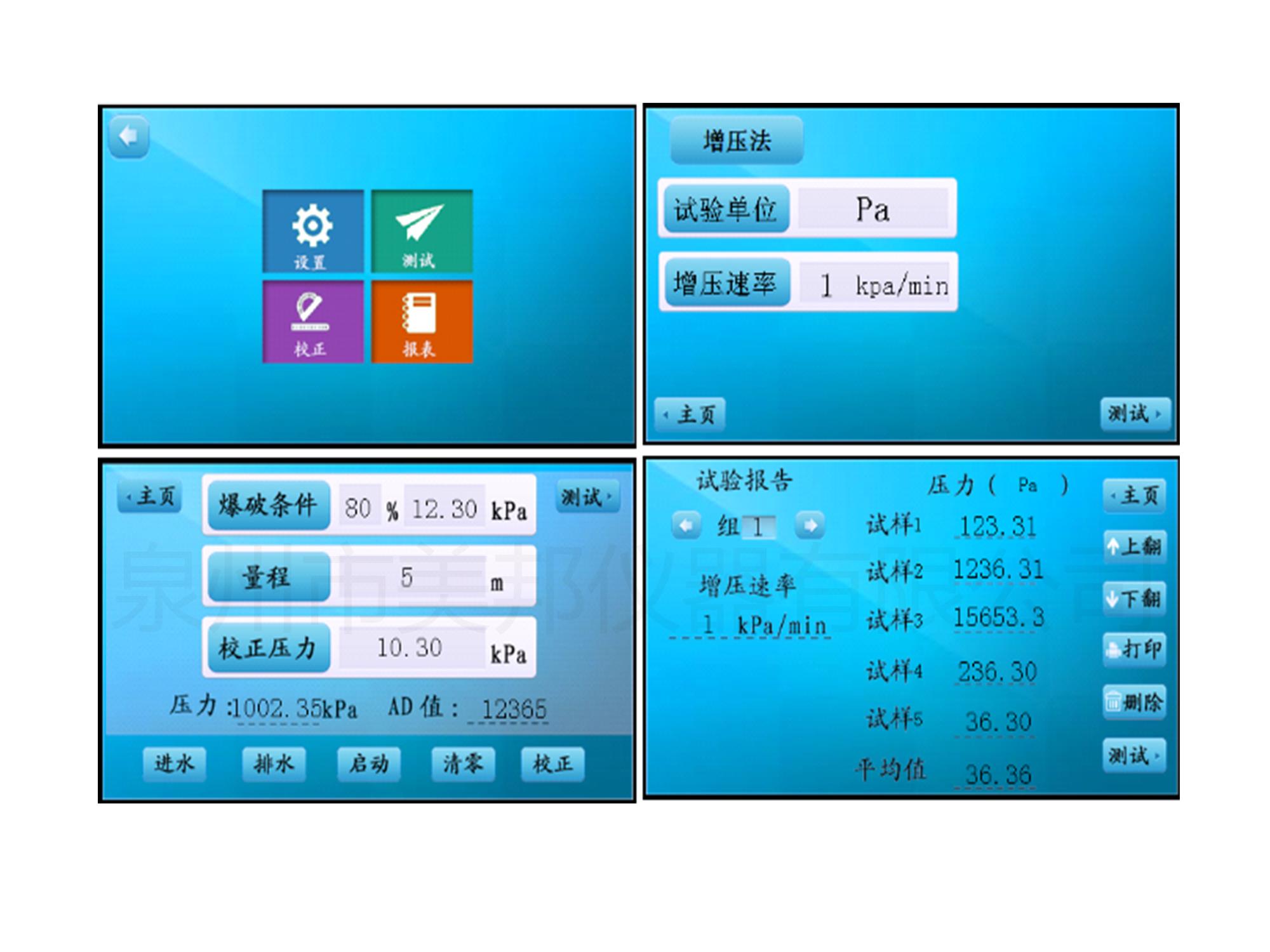 增壓法、定壓定時、定壓計時、滲水漏水、撓曲實驗 |